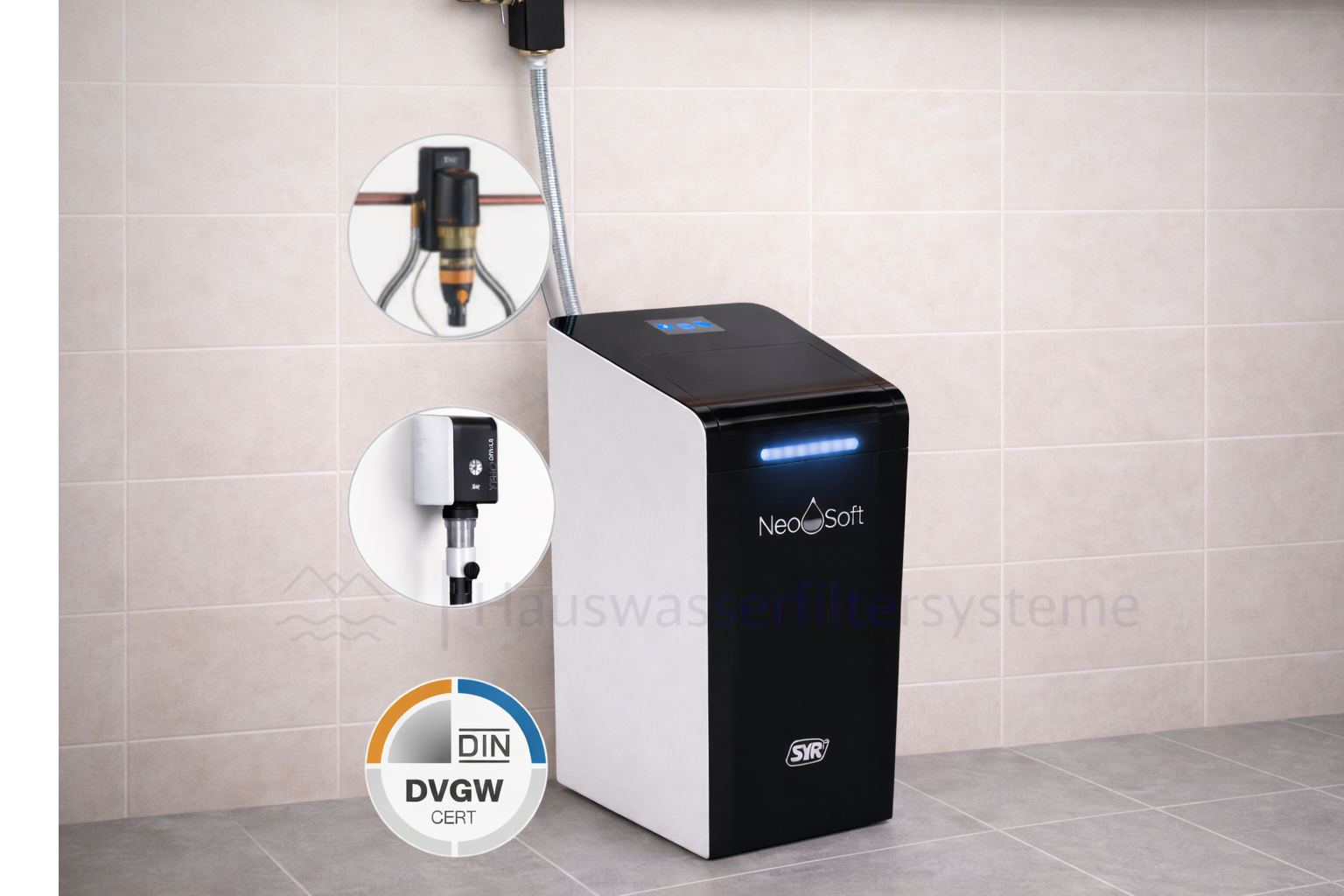SYR NeoSoft Connect 2500 – schützt bis zu 3 Wohneinheiten vor Kalkablagerungen. Dank modernster Technologie passt sie sich automatisch dem Wasserverbrauch an und ist dadurch besonders sparsam! Die Enthärtungsanlage ist DVGW zertifiziert.
